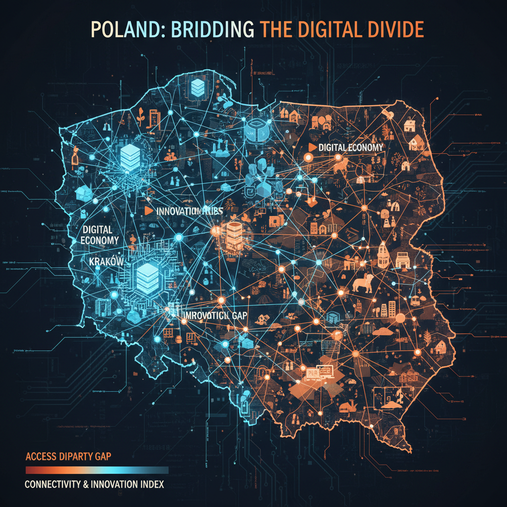 | Internet szerokopasmowy (2000+) | Niedoinwestowanie infrastruktury | Nierówności cyfrowe regionalne |