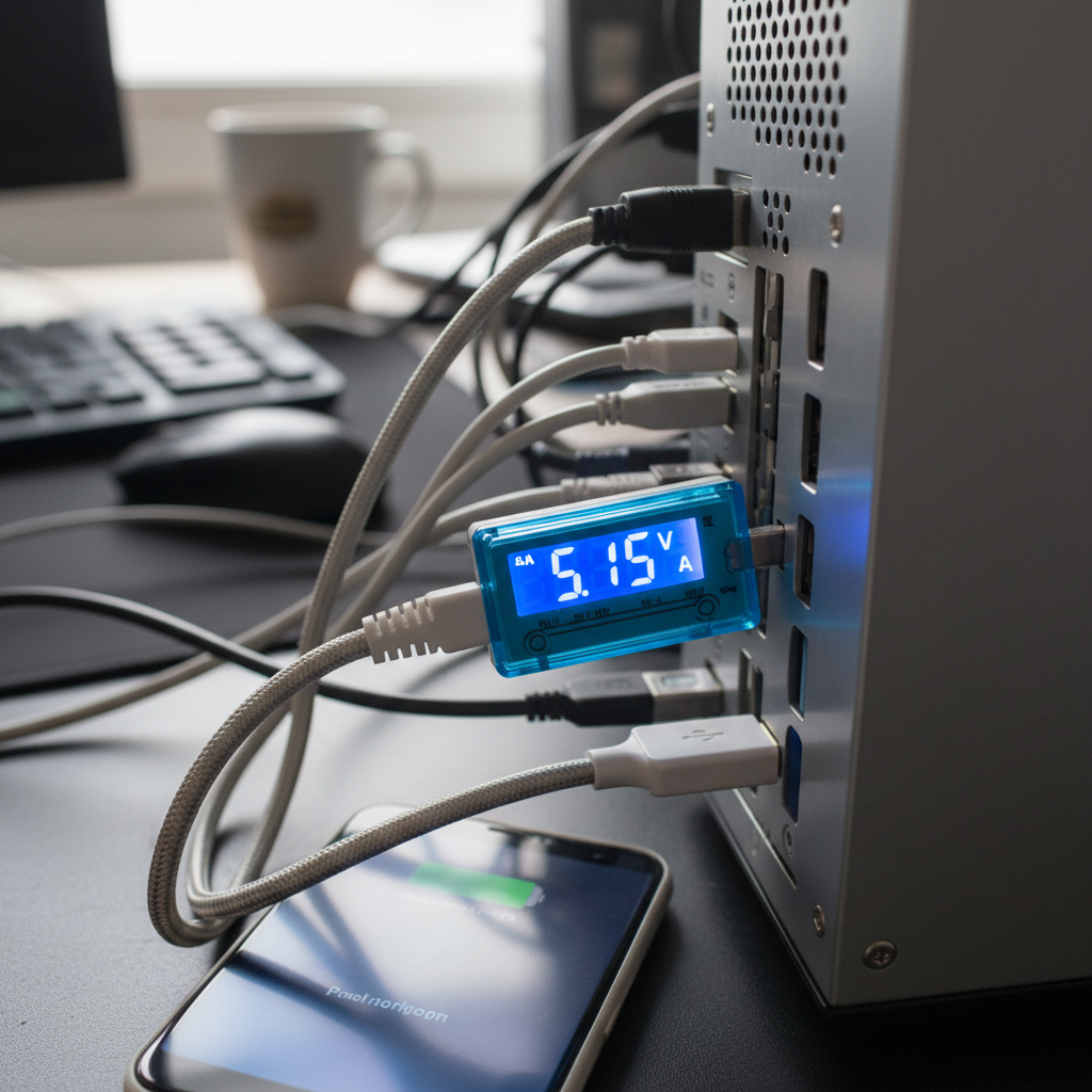- Zmierz napięcie portu analizatorem USB: Wartości poniżej 4,75V lub powyżej 5,25V mogą powodować losowe awarie.