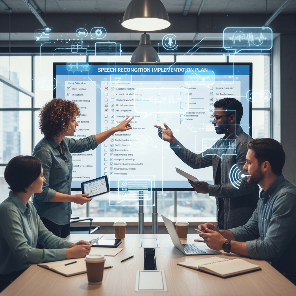 Zespół projektowy analizuje checklist przed wdrożeniem rozpoznawania mowy AI – klucz do sukcesu.